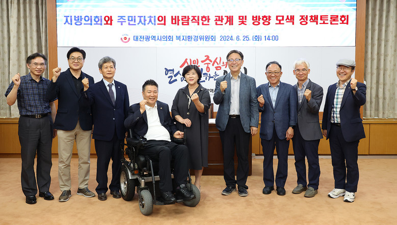 [대전 세계타임즈=이채봉 기자] 대전시의회 복지환경위원회는 안경자 의원(국민의힘, 비례) 주재로 25일 14시 대전시의회 소통실에서 ‘지방의회와 주민자치의 바람직한 관계 및 방향 모색 정책토론회’를 개최했다.