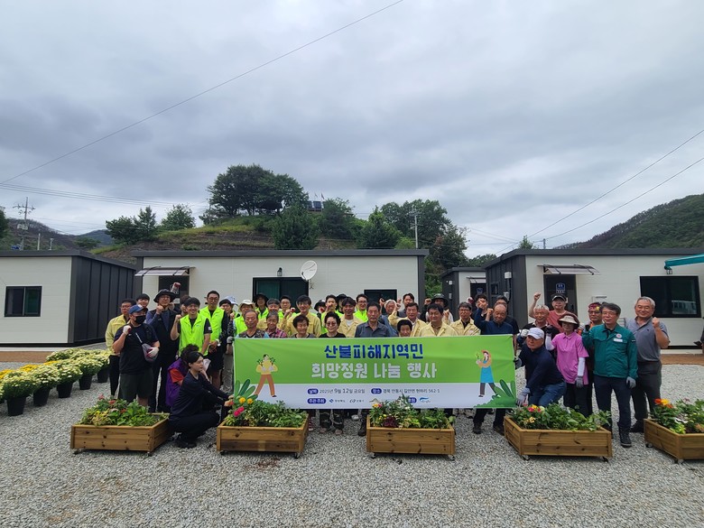 이번 행사는 산불 피해로 삶의 터전을 잃고 임시거주 중인 주민들에게 정원을 통해 심리적 안정과 회복을 돕고 생활환경을 개선하기 위해 마련됐다.