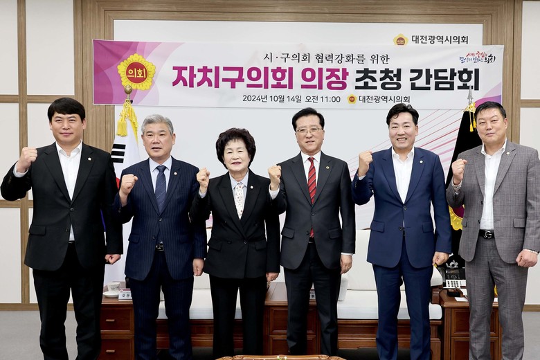 조원휘 의장은 “지역 주민들을 위해 최일선에서 일하는 자치구 의장을 초청해 지역의 목소리를 경청할 수 있는 소통과 화합의 시간이었다”며, “앞으로도 대전시와 자치구 현안 사업에 대해 시민의 대표기관인 의회가 앞장서 해결 방안을 함께 마련하겠다”고 말했다.