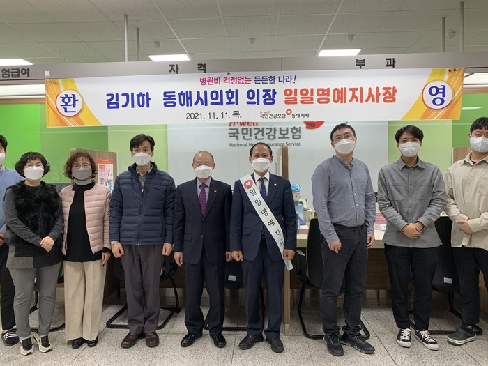 김기하 의장은 “초고령사회 진입을 목전에 두고 있는 현재 국민건강보험공단의 역할은 중요하다 ”고 말하며 “이번 일일 명예 지사장직 수행을 통해 국민건강보험공단 동해지사가 동해시민의 행복과 건강증진을 위해 애쓰는 중요한 기관임을 느꼈으며 향후 상호 유기적인 협력을 통해 시민 건강의 든든한 버팀목이 될 수 있도록 적극 지원하겠다”고 밝혔다.