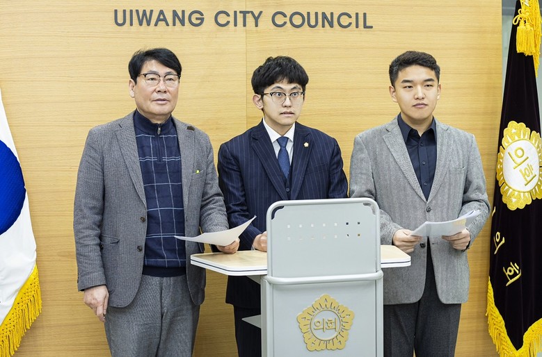 | ▲성명서를 발표하고 있는 의왕시의회 서창수·박현호·한채훈 의원.(사진=의왕시의회) |