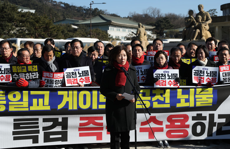 국민의힘 나경원 의원이 20일 청와대 앞에서 열린 통일교 게이트 및 민주당 특검 촉구 기자회견에서 발언하고 있다. 2026.1.20