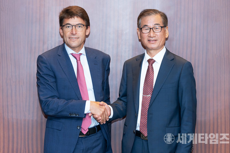 [왼쪽부터 브루노 이븐(Bruno Even) 에어버스 헬리콥터스 CEO, 강구영 한국항공우주산업(KAI) 사장]