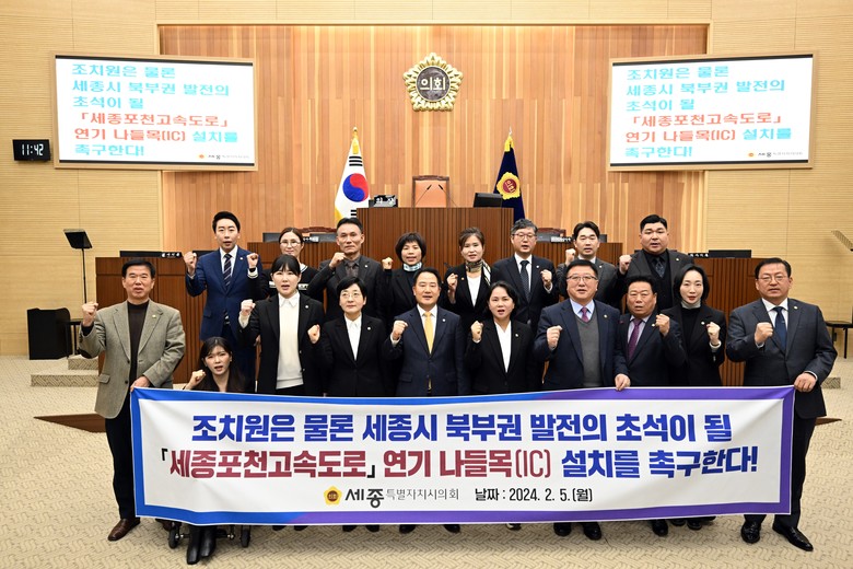 한편, 세종시의회는 ‘「세종포천고속도로」 연기 나들목(IC) 설치 촉구 결의문’을 국회의장과 국무총리, 더불어민주당 대표, 국민의힘 대표, 행정안전부장관, 국토교통부장관, 행정중심복합도시건설청장, 한국도로공사 사장 등에 이송할 예정이다.
