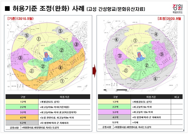 정광열 강원특별자치도 경제부지사는 “이번 규제 개선은 「강원특별법」과는 별도로 도지사의 권한 범위 내에서 추진되는 합리적인 규제개선 사례”라며, “도지정유산의 보존은 물론, 침체된 유산 소재지의 관광자원화와 지역경제 활성화에도 크게 기여할 것으로 기대된다”고 말했다. 이어 “시군과의 긴밀한 협조 체계를 바탕으로 규제를 적극 완화해 나가겠다”고 밝혔다.