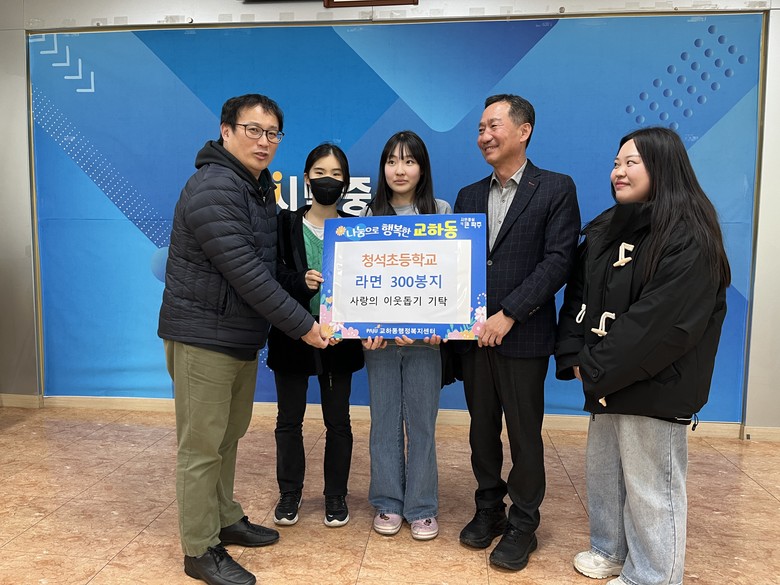 청석초의 창업 마켓이 더 뜻깊었던 것은 학생들이 라면을 기부하면 가상 화폐를 지급하여 창업 마켓의 다양한 상품을 구매하거나 서비스를 활용할 수 있었으며, 기부된 300개의 라면은 교하동의 어려운 이웃들을 위해 전달했기 때문이다.