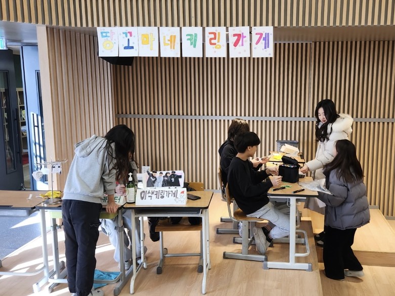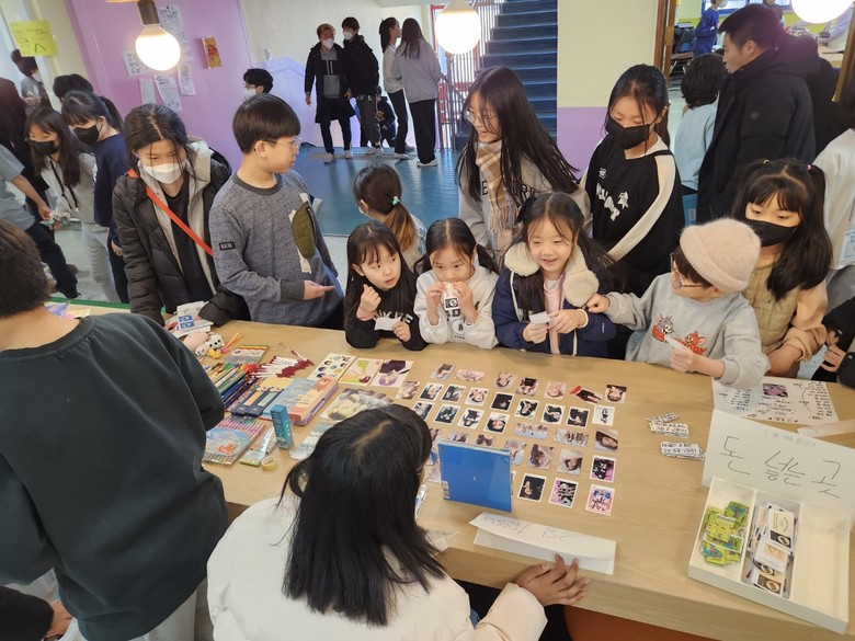 창업 마켓 당일에는 그동안 아이들이 준비한 상품을 전교의 학생들이 참여하여 구입하고 누리는 시간을 가졌으며, 예술 꽃 씨앗 학교 사업 연계로 진행된 미술관 카페에서는 학부모님들의 봉사 지원으로 맛있는 차와 빵도 구입해 먹을 수 있었다.