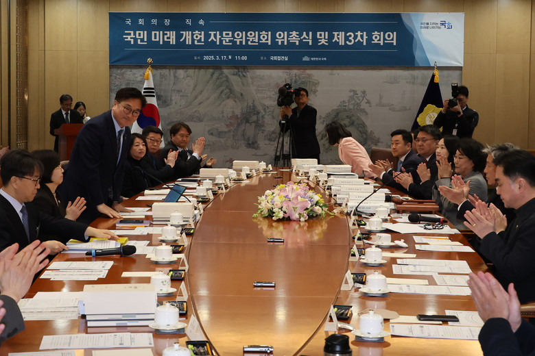 [세계타임즈 = 이채봉 기자] 우원식 국회의장은 17일 정치권 안팎으로 개헌 논의가 이어지는 데 대해 "개헌 여건이 점점 무르익어가고 있다"고 말했다.우 의장은 이날 국회에서 열린 국회의장 직속 '국민 미래 개헌 자문위원회'(자문위) 위원 위촉식에서 "비상계엄 사태와 대통령 탄핵 심판을 겪으며 국가원로, 지방자치단체, 시민사회, 학계 등에서 다양한 개헌 담론이 분출되고 있다"며 이같이 밝혔다.