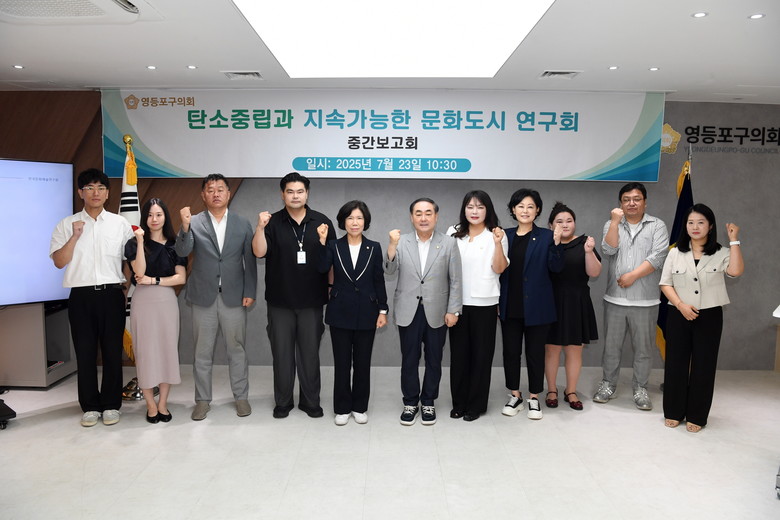 [영등포구 세계타임즈=이장성 기자] 영등포구의회 의원연구단체 ‘탄소중립과 지속가능한 문화도시 연구회’가 23일 수요일 오전 10시 30분 영등포구의회 다목적회의실에서 중간보고회를 개최하고, 관련 현장 답사를 실시했다.