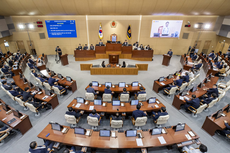 박성만 의장은 개회사를 통해 46년만의 기록적인 폭우로 피해를 입은 울릉군민에게 위로를 전하며, 집행부의 신속한 피해복구를 당부하였다.