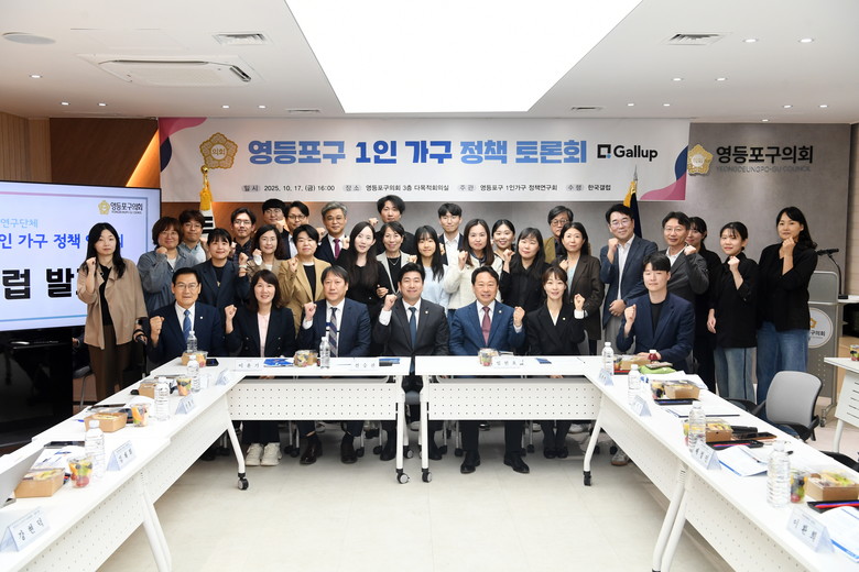 다양한 현장 의견을 수렴하고 보다 실효성 있는 정책을 도출하고자 마련된 이번 토론회에는 연구회 소속 의원들(전승관 대표의원·임헌호 간사·김지연·신흥식·양송이·이예찬·최봉희 의원)과 연구용역을 맡고 있는 한국갤럽 연구진, 영등포구청 관련 부서 담당자, 관내 1인 가구 및 청년 정책 유관기관 대표 및 실무자 등 40여 명이 함께 했다.