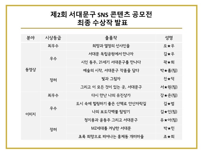 ‘서대문구 SNS 콘텐츠 공모전’은 서울 서대문구에서 지역을 홍보하면서 지역거점의 온라인 크리에이터 활동을 촉진하기 위해서 개최한 행사로 이번이 2회차이다.