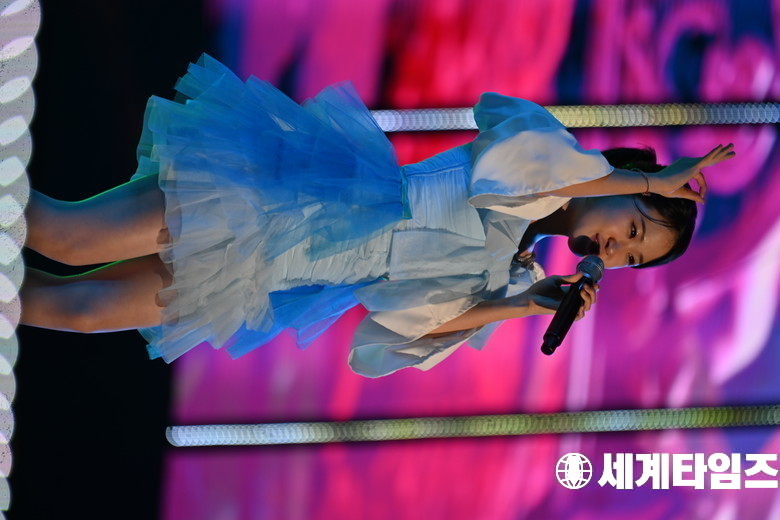 가수 '김다현'이 9일 충북도민체육대회 개막식에 참석해 공연을 하고있다.세계타임즈 / 신상철 기자 news@thesegye.com
