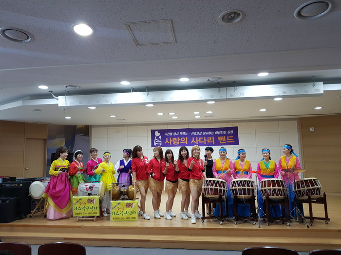 이날 봉사에는 밴드 회원 60명이 참석해서 1층 미용봉사, 2층 위문공연 봉사, 5층 삼계탕 300마리 봉사를 대덕구장애인들에게 즐거움과 행복을 전했다.