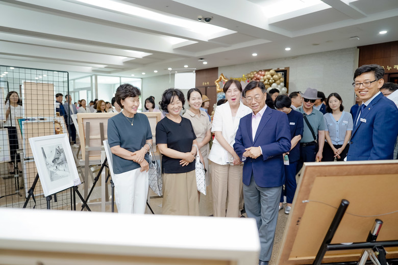 축사를 마친 후 신 시장은 47개 동 주민자치센터 프로그램 수강생들의 서예, 그림, 공예 작품들을 직접 관람하며 참여 주민들의 작품 활동을 격려하는 시간을 가졌다.