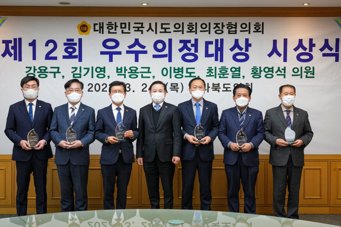우수의정대상은 대한민국시도의회의장협의회가 매년 지방자치 발전 및 주민들의 삶의 질 향상에 기여하고 의정활동이 돋보이는 광역의회 의원을 선정하여 수여하는 상으로, 코로나19로 인해 상패는 24일 전라북도의회 송지용 의장이 전달했다.