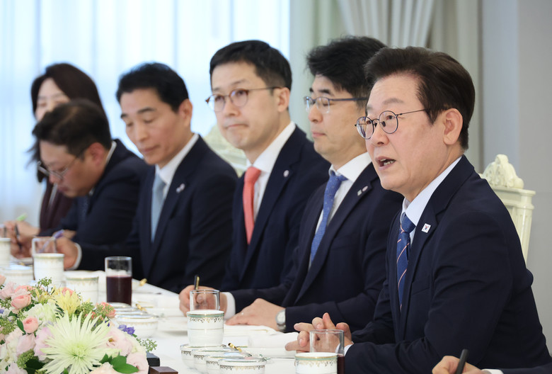 이재명 대통령이 18일 용산 대통령실에서 증권사 리서치센터장들과 오찬 간담회 중 발언하고 있다. 2025.9.18