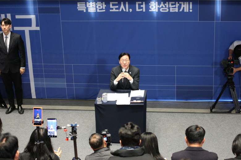 행정체제 전환과 관련해 정 시장은 “내 집 앞 30분 행정생활권을 실현해 시민에게 더 빠르고 가까운 행정을 제공하겠다”며, 각 구의 특성에 맞춘 산업·교육·문화·정주 전략을 제시했다. 특히 동탄구는 미래산업 경제도시, 병점구는 첨단기술과 역사문화가 공존하는 성장도시, 효행구는 교육 중심의 자연친화 정주도시, 만세구는 산업·자연·관광이 융합된 혁신도시로 육성하겠다고 밝혔다.