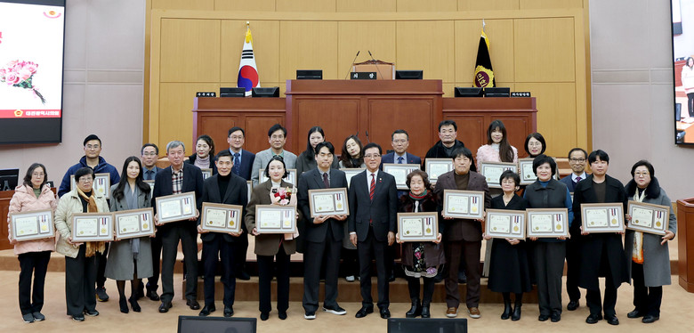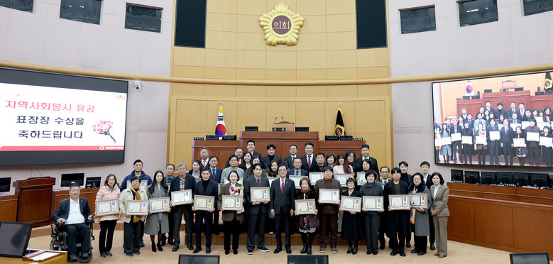 시의회는 15일 본회의장에서 「2025년 지역사회봉사 유공자 표창장 수여식」을 열고, 지역사회 발전과 시민 복리 증진에 기여한 시민 40명에게 표창장을 수여했다.