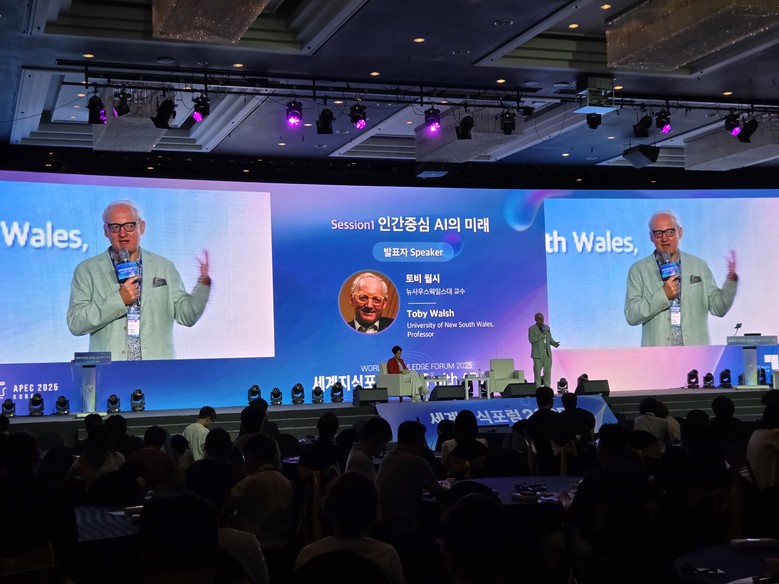 마지막 날 첫 번째 대담은 토비 월시(호주 뉴사우스웨일스대 교수)와 박유현(DQ연구소 설립자 겸 대표)의 “인간중심 AI의 미래”로 출발했다.