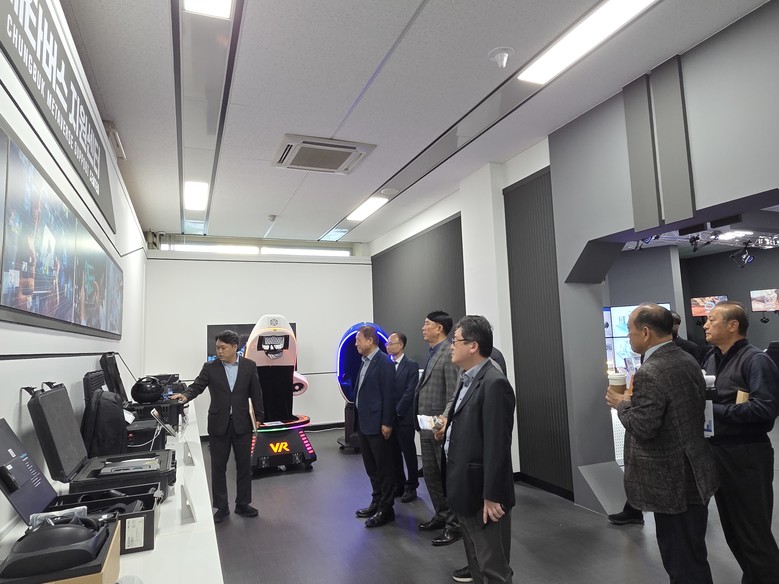 첫 일정으로 방문한 충북과학기술혁신원 내 ICT디바이스랩 및 메타버스지원센터는 AI 전환을 선도하는 혁신 인프라로서 신기술 기반 스타트업 및 콘텐츠 기업을 대상으로 시제품 제작, 실증, 사업화를 종합 지원하고 있다.