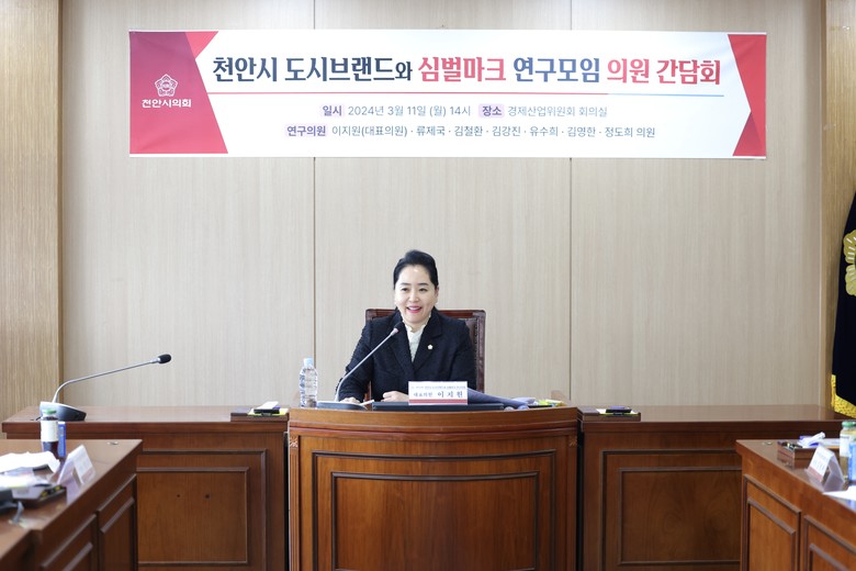 [천안시 세계타임즈=백택기 기자] 천안시의회 의원 연구모임인 <천안시 도시브랜드와 심벌마크 연구모임>(대표의원 이지원)이 3월 11일 의원 간담회를 열고 연구모임의 활동 방향 및 운영 계획에 대해 확정했다.
