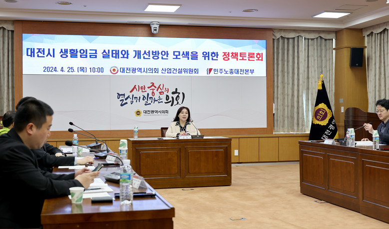이번 토론회는 대전시의회 산업건설위원회와 민주노총대전본부가 공동으로 주관하여 생활임금제의 현황을 점검하고 보다 효과적인 개선 방안을 모색하기 위해 마련되었다.