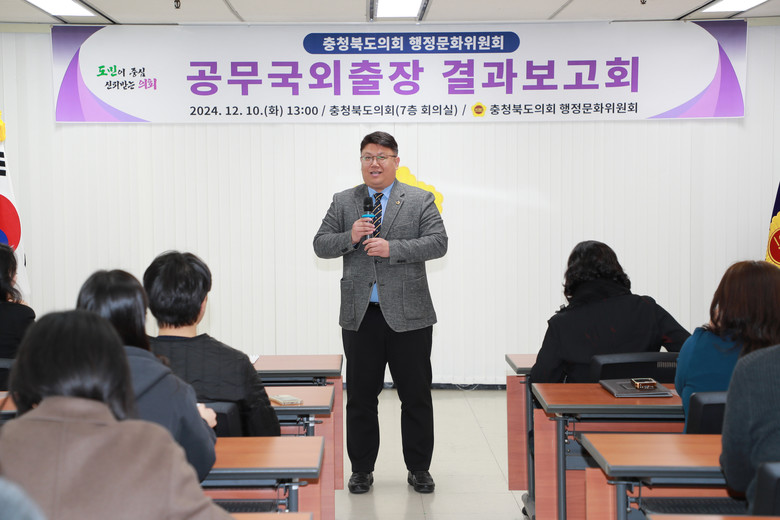 [충북 세계타임즈=이현진 기자] 충북도의회 행정문화위원회(위원장 최정훈)는 10일 도의회 회의실에서 공무국외출장(호주) 결과를 공유하고 의정 발전 자료로 활용하기 위한 결과보고회를 개최했다.