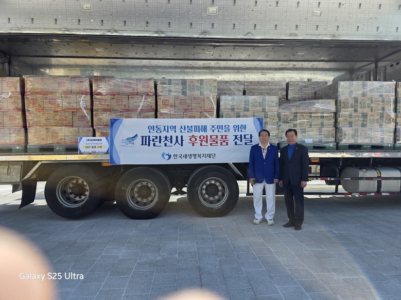 같은 날, 경북 영덕군 지역에도 산불로 인한 피해가 계속되고 있는 점을 감안해, 파란천사 봉사자들이 현장을 찾아 음료 등 추가 구호물품을 긴급 지원했다.