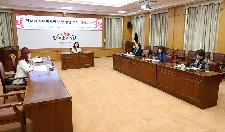 [대전 세계타임즈=이채봉 기자] 대전시의회는 김민숙 의원(더불어민주당, 비례대표) 주재로 25일 시의회 소통실에서 ‘청소년 사이버 도박 예방 방안 모색 정책토론회’를 개최했다.