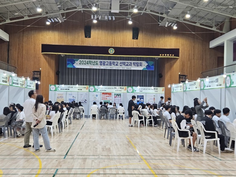 영광고등학교(교장 김문주)는 지난 4일 체육관에서 ‘2025학년도 선택교과 박람회’를 개최했다. 이 박람회는 1·2학년 학생들에게 2025학년도 2·3학년 선택교과에 대한 정보를 제공하고 진로에 맞게 과목을 선택하도록 지원하기 위해 마련됐다.