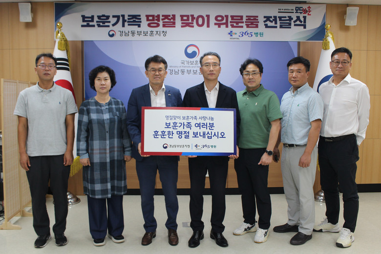 [세계타임즈]최성룡기자 = 국가보훈부 경남동부보훈지청(지청장 김상우)은 23일(화) 정부경남지방합동청사에서 추석명절을 맞아 365병원(병원장 강명상)과 함께 보훈가족을 위한 위문품 전달식을 가졌다.
