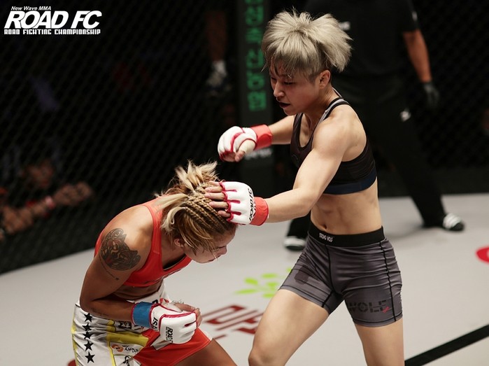 [세계타임즈 김인수기자] ROAD FC(로드FC) 아톰급 챔피언 벨트를 노리는 ‘몬스터 울프’ 박정은(22, 팀 스트롱울프)의 패기가 식지 않았다. 오는 15일 그랜드 힐튼 서울에서 개최되는 XIAOMI ROAD FC 051 XX(더블엑스)에서 ‘아톰급 챔피언’ 함서희(30, 팀매드)와 아톰급 세계 타이틀전을 치르는 박정은은 시합이 다가올수록 더욱 타오르고 있다.