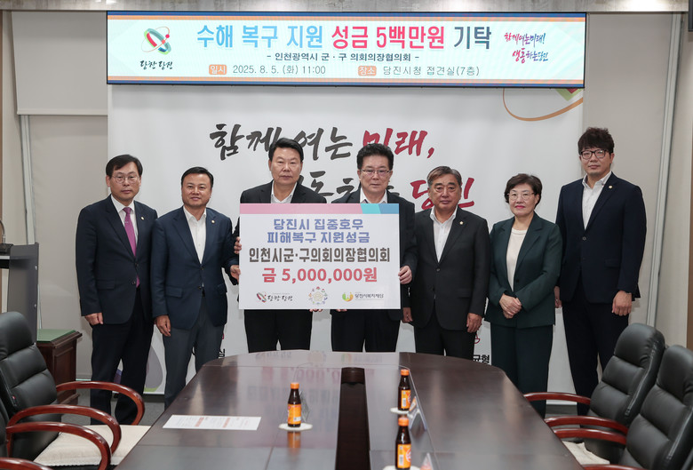 이의명 회장은 “집중호우로 어려움을 겪고 있는 당진 시민 여러분께 작은 정성이지만 힘이 되기를 바란다”며 “인천과 당진이 함께 상생하고 연대할 수 있기를 기대한다”고 전했다.