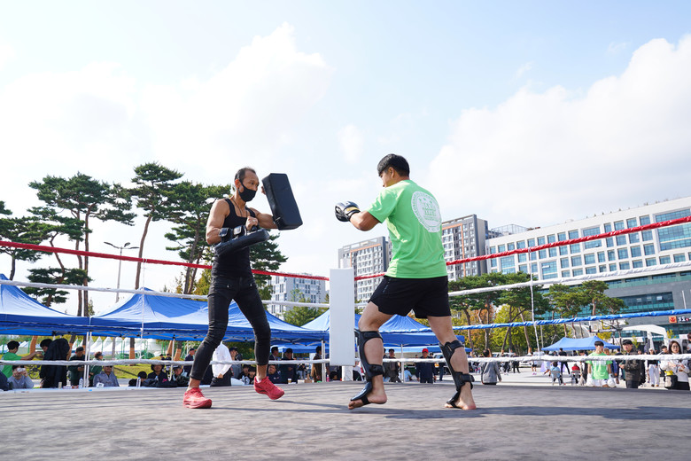 이와함께 스내그 골프체험, E드론 축구, 레이저사격 등 스포츠 융복합 프로그램과 건강솔루션센터, 키즈존, 스포츠카페, 한마음피크닉존, 푸드트럭을 비롯해 만들기체험 등 참여형 부대행사가 운영돼 관심을 끌었다.