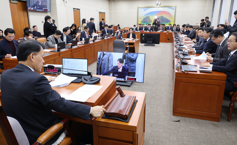윤한홍 국회 정무위원회 위원장이 27일 서울 여의도 국회에서 열린 정무위원회 전체회의에서 의사봉을 두드리고 있다. 2025.11.27