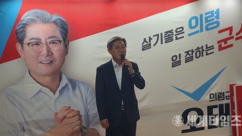 [세계타임즈 = 이진화 기자] 제8회 전국동시지방선거에서 당선으로 재선을 확정지은 무소속 오태완 의령군수 당선자가 3일 해단식을 갖고 기념촬영을 하고 있다.(사진=오태완 당선자 캠프 제공)