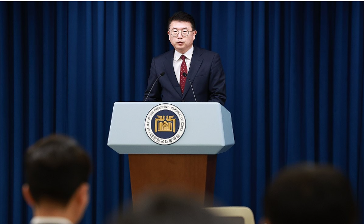 장상윤 대통령실 사회수석이 대통령실 청사에서 의대 증원 관련 현안 브리핑을 하고 있다.