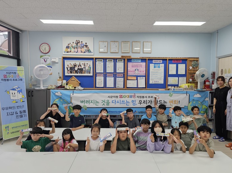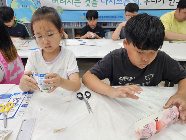 이번 활동은 (사)전북특별자치도자원봉사센터의 지역밀착형 우수 프로그램 공모사업의 일환으로, 환경 보호, 자원순환 실천과 이웃과의 정서적 나눔을 목적으로 기획되었으며, 자원순환의 중요성과 작은 실천의 의미를 배우는 환경교육으로 시작해 수거한 우유팩을 깨끗이 세척·건조하여 필통과 지갑 120세트를 만드는 실습까지 진행했다.