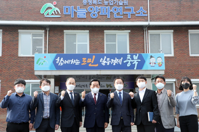 이어 충북의 제일 동쪽에 있는 마늘양파연구소를 찾아 직원들을 격려하고, 고품질 마늘종구 공급을 통해 농가소득 증대에 힘써 달라고 주문했다.
