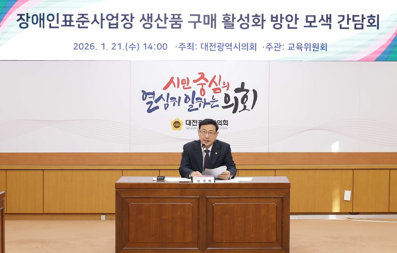 교육위원회 민경배 의원(무소속, 중구3)이 좌장을 맡은 이번 간담회는 대전지역 장애인표준사업장 현황을 확인하고, 공공구매가 장애인 고용과 지역경제 활성화로 실질적으로 이어질 수 있는 방안을 모색하기 위해 마련됐다.