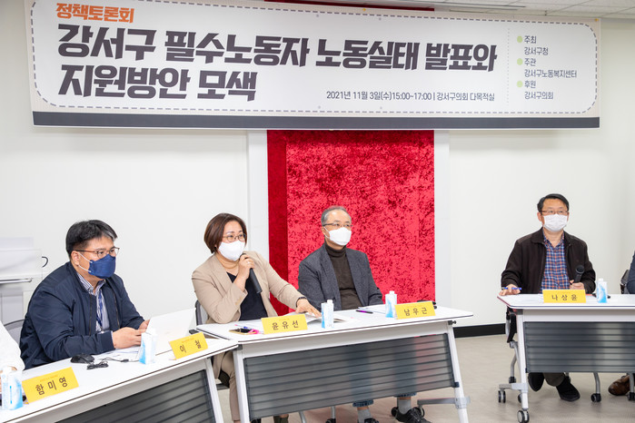 [강서구=세계타임즈 이장성 기자] 서울시 강서구의회 윤유선 의원은 11월 3일(수) 오후 3시 강서구의회 다목적실에서 개최한 ‘강서구 필수노동자 노동실태 발표와 지원방안 모색을 주제로 한 정책 토론회’에 토론자로 참석하였다.