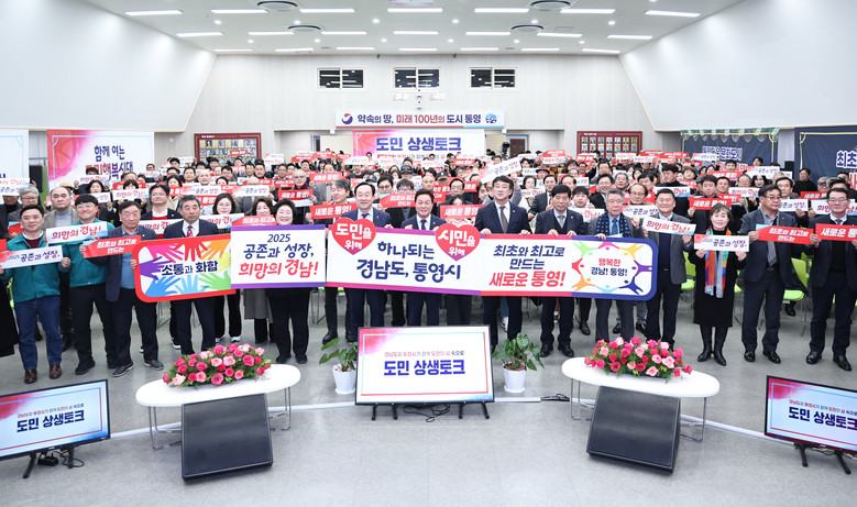 ‘도민 상생토크’는 도민과의 쌍방향 소통을 강화하기 위해 올해 새롭게 도입된 프로그램으로, 도지사가 직접 지역을 찾아 주민들의 목소리를 듣고 정책에 반영하는 자리다. 이날 행사에는 박완수 도지사를 비롯해 천영기 통영시장과 지역 주민 260여 명이 함께했다.