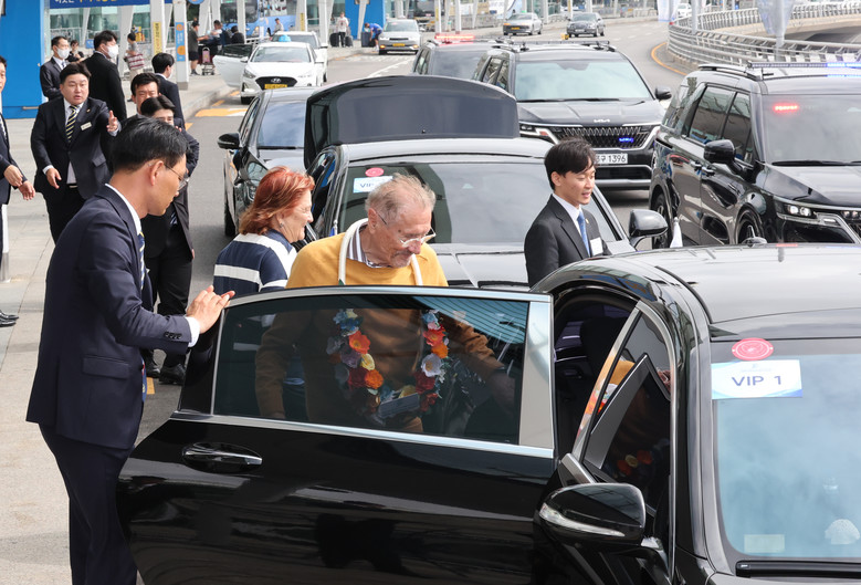 [세계타임즈 = 백진욱 기자] 에밀 콘스탄티네스쿠 루마니아 전 대통령이 16일 오전 HWPL이 주최하는 9·18 평화만국회의 제9주년 기념식에 참석하기 위해 인천국제공항을 통해 입국한 가운데, HWPL 공항영접부와 의전차량부의 의전을 받으며 차량에 탑승하고 있다.