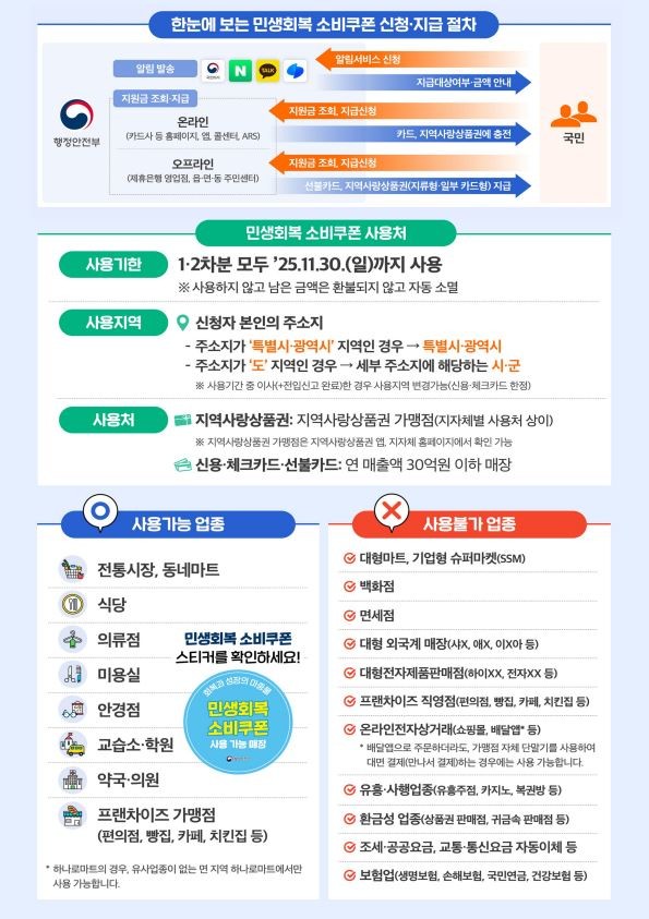 군 관계자는 "이번 민생회복 소비쿠폰 지급이 지역경제 활성화를 위한 마중물이 될 것으로 기대한다"며 "군민들께서 가장 신속하고 원활하게 소비쿠폰을 수령할 수 있도록 만전을 기하겠다"고 밝혔다.