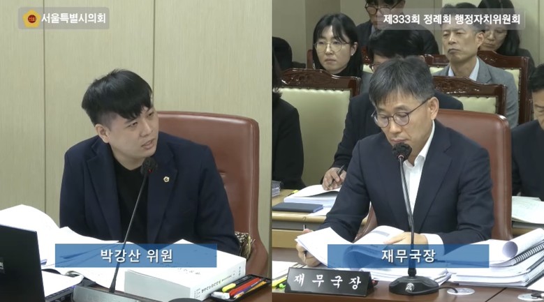 [서울 세계타임즈=이장성 기자] 서울시의회 박강산 의원(더불어민주당‧비례대표)은 10일 오전 서울시 재무국을 대상으로 한 2025년도 행정자치위원회 행정사무감사에서 한국지방세연구원의 방만한 운영 및 이중구조 문제를 비판하며 서울시 재무국의 책임 있는 역할론을 주문했다.