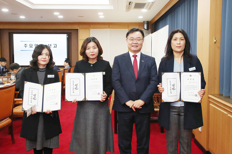 | ▲ 왼쪽부터 정지혜 법무담당관 규제개혁팀장, 이영숙 문화예술과 문화진흥지원팀장, 홍남표 창원특례시장, 정수정 항만물류정책과 물류팀장 |