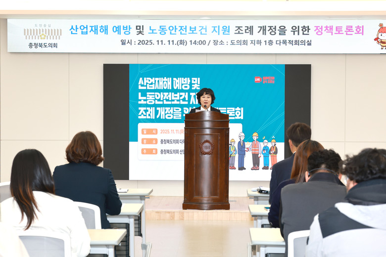 [충북 세계타임즈=이현진 기자] 충북도의회 산업경제위원회(위원장 김꽃임)는 11일 의회 다목적 회의실에서 ‘충청북도 산업재해 예방 및 노동안전보건 지원 조례’ 개정 방향을 모색하기 위한 정책토론회를 개최했다.