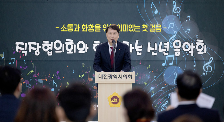 [대전 세계타임즈=이채봉 기자] 대전시의회 이상래 의장은 1일 대전시의회 1층에서 개최된 ‘직장협의회와 함께하는 신년 음악회’에 참석해 음악회 준비에 노고를 아끼지 않은 의회사무처 직장협의회 송치영 회장을 비롯한 관계자들과 인사를 나누고 격려했다.