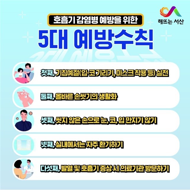 김용란 서산시 보건소장은 “호흡기감염병 예방수칙은 우리 모두의 건강을 지키는 가장 효과적인 방법입니다"라며 "면역력이 취약한 고령층과 기저질환자는 더욱 각별한 주의가 필요합니다"라고 말했다.